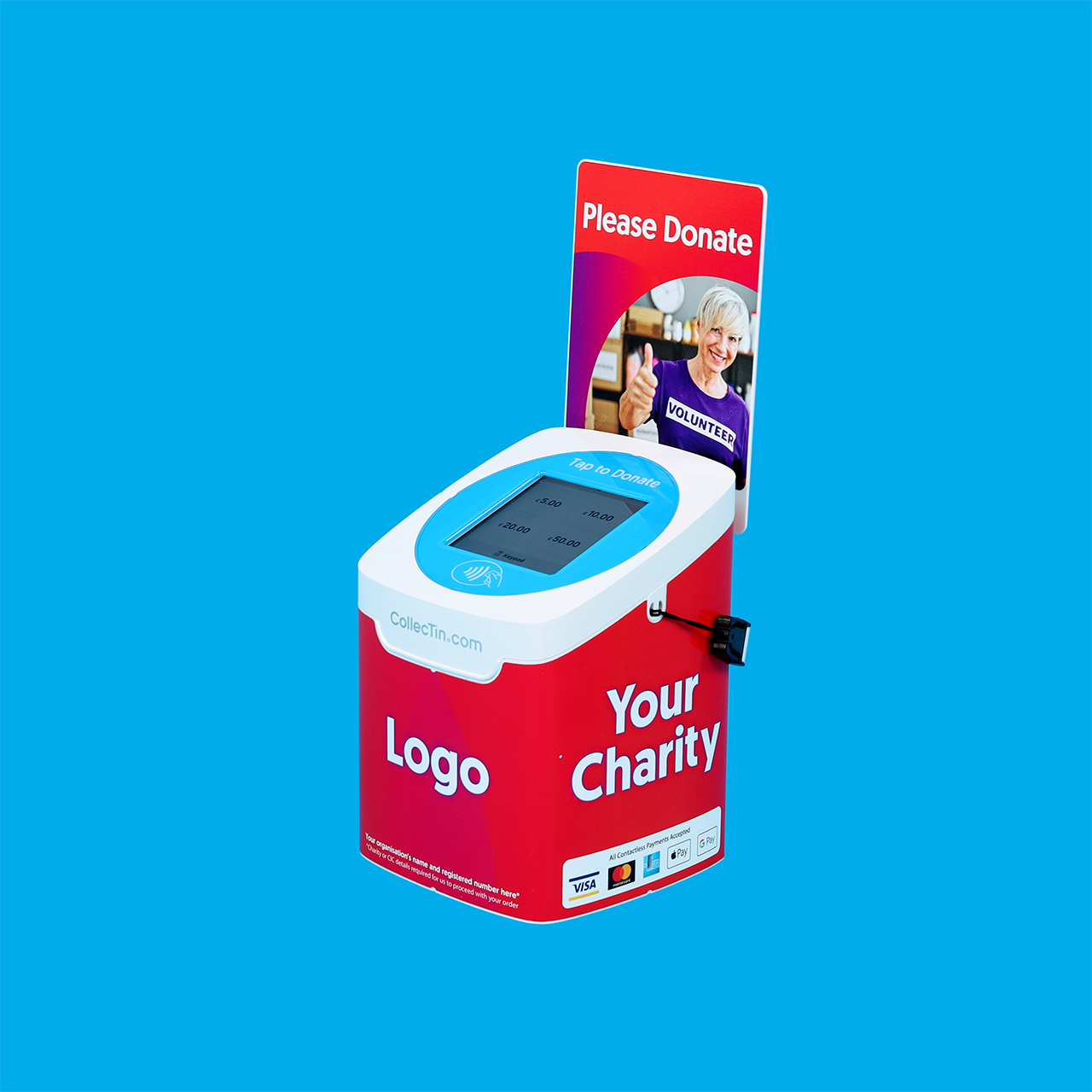 These products have VAT applied at check out for customers who are not registered charities or registered charities who wish to use their CollecTin units for taking donations AND for point of sale.