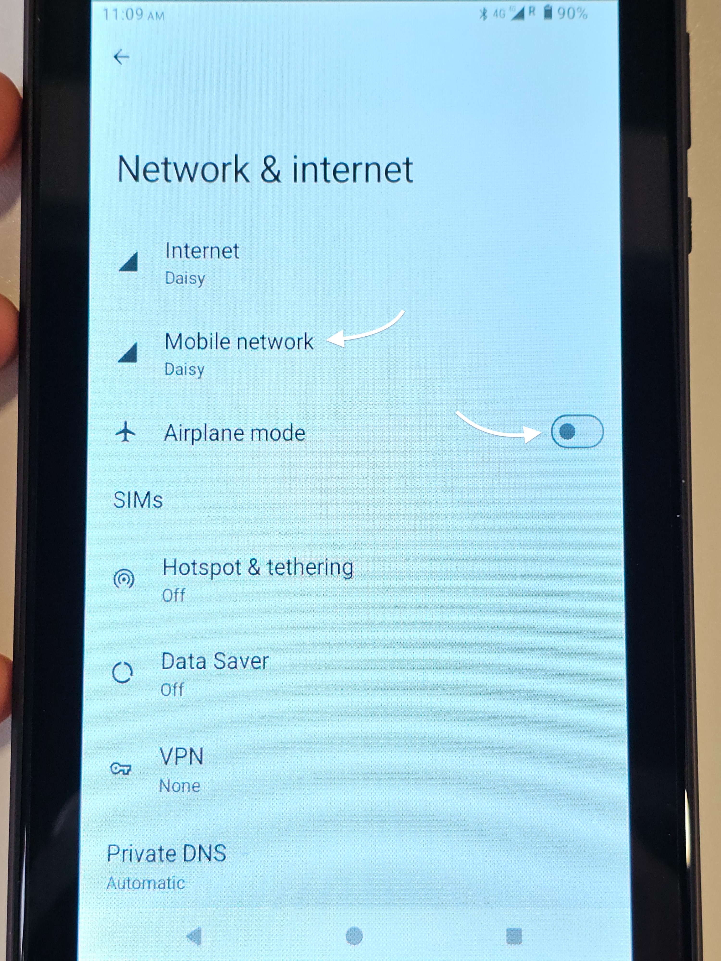 - If OFF, please toggle aeroplane more ON, wait 5 seconds and toggle it to OFF again